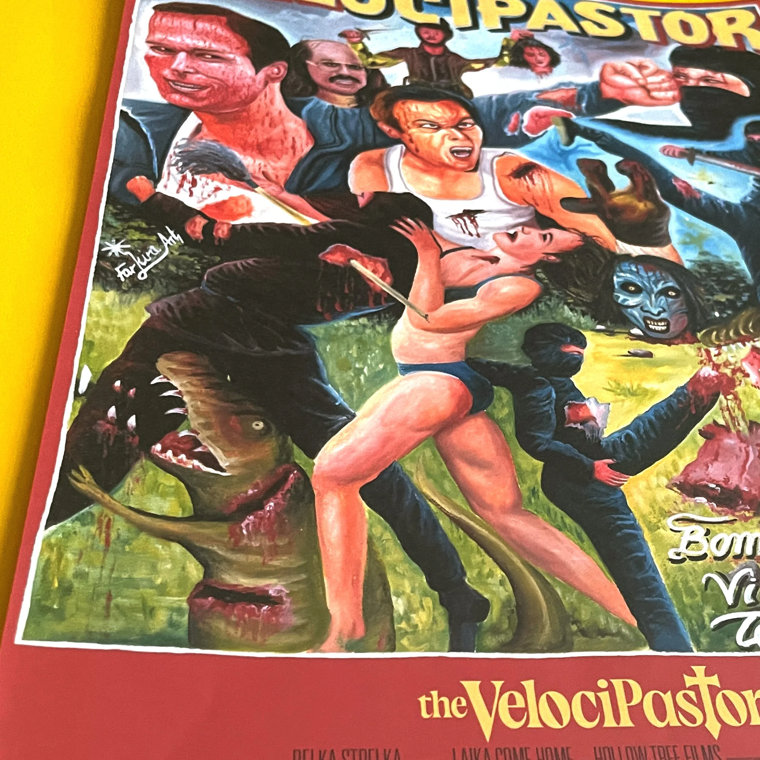 Categories: All Posters/Prints Apparel Stickers Physical Media Shop All Posters/Prints Apparel Stickers Physical Media The VelociPastor [Blu-ray] $30.00 Add To Cart Added! The VelociPastor [DVD] $20.00 Add To Cart Added! The VelociPastor on VHS [BOOTLEG] $45.00 Add To Cart Added! The VelociPastor: The T-Shirt [Patron Saint of Dinosaurs] $30.00 Small Medium Large XL XXL Add To Cart Added! Patron Saint of Dinosaurs Sticker $5.00 Add To Cart Added! VFX: Car on Fire - Bumper Sticker $10.00 Add to Car(t) Added! The VelociPoster [Deadly Prey Gallery] $20.00 Add To Cart Added! The VelociPoster $20.00 Add To Cart Added! Poster Combo Sale Price: $30.00 Original Price: $40.00 Sale Add To Cart Added!